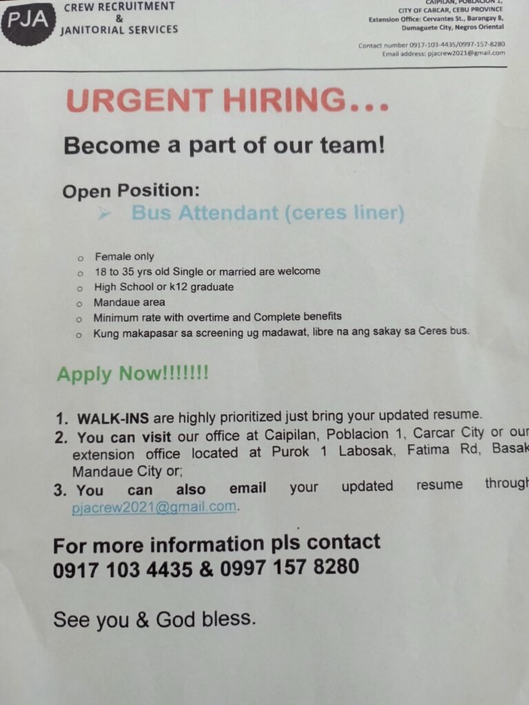 Ayaw kalimot pagdala sa inyong resume ug valid IDs!
